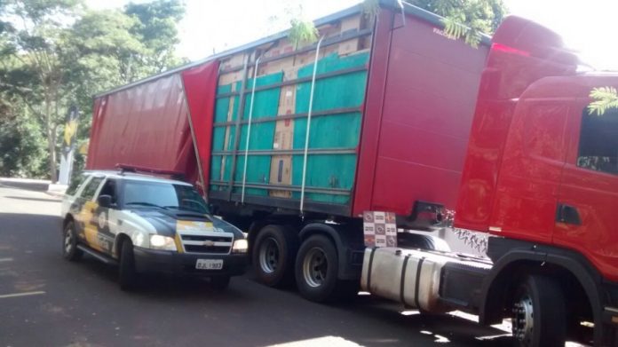 Mas os PMs resolveram conferir a carga e encontraram a carreta carregada com cerca de 900 caixas de cigarros do Paraguai, aproximadamente 450 mil maços das marcas EIGHT e SAN MARINO.