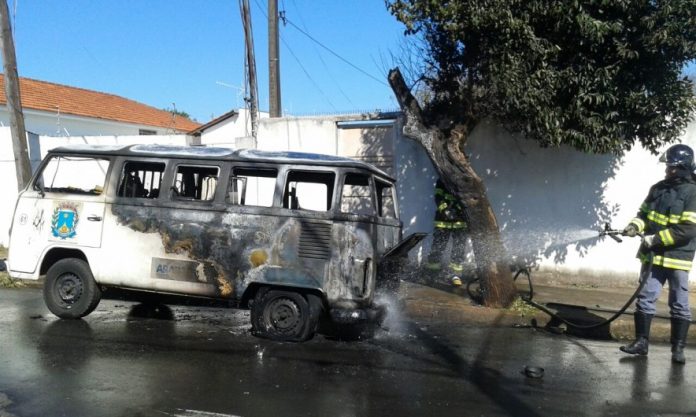 Uma VW/Kombi da prefeitura de Araraquara pegou fogo na manhã desta segunda-feira (27) no bairro Santa Angelina. Segundo informações, o motorista dirigia sentido centro/bairro quando ouviu uma explosão. Ao parar, viu que o veículo estava pegando fogo.